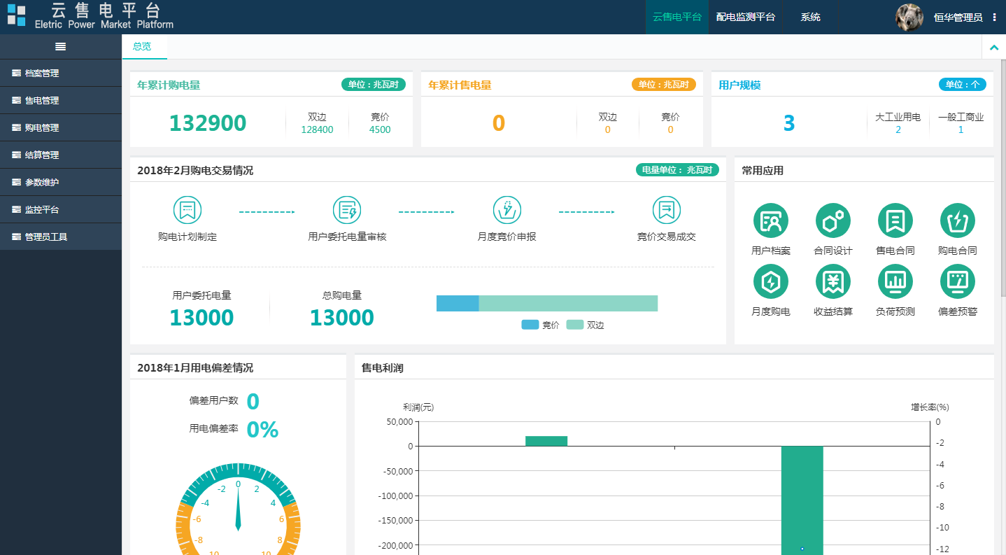 2017年,云售電平臺經(jīng)過多次迭代更新,不斷在功能優(yōu)化、交互設(shè)計等各個方面滿足用戶需求,提升用戶體驗。2018年,隨著核心技術(shù)的不斷完善,云售電平臺還將持續(xù)推陳出新,支持實時數(shù)據(jù)監(jiān)測、負(fù)荷曲線預(yù)測、電價預(yù)測、智能電量分配、智能交易,滿足年度、季度、月度、日前、日內(nèi)、實時等不同周期的集中競價、掛牌交易、雙邊協(xié)商、合同轉(zhuǎn)讓等多種交易模式需求。