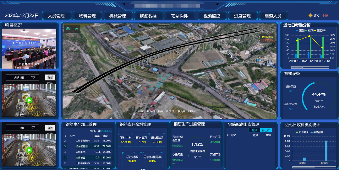數字基建現場智慧管控平臺借助物聯網、云計算、大數據、VR/AR多媒體、北斗定位、區塊鏈等技術,以提升工程建設安全和質量為重點,以“信息系統服務于管理提升與效率”為建設原則,以自有平臺為技術架構核心,融合BIM+GIS及物聯網平臺,推進基于BIM技術為支撐的三維設計、工程管控,實現對設計、施工、進度、質量、安全等各環節工作過程數據的深度融合和一體化展示;同時與人員、機械、車輛、物資、工法、環境等業務相結合,實現工程全過程的數據自動采集、智能分析及智能預警;通過人機交互、感知、決策、執行和反饋,客觀分析施工場域的進度、安全、質量及風險等的特征和規律,將虛擬的業務系統與真實世界的場景深度融合,實現“施工現場全面感知”、“工程建設綜合指揮”、“工程BIM全生命周期管控”、“安全教育沉浸體驗”的建設目標,全面實現施工現場的管理智慧化、生產智慧化、監控智慧化和服務智慧化。
